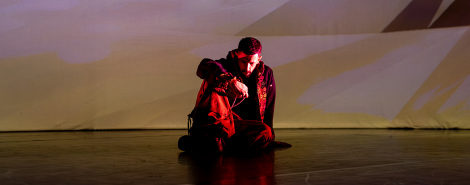 Of course I would be remiss if I did not speak of Shaheen’s dancing body. Not because this is billed as a dance piece but because when he dances time stands still. Yes, Shaheen is that good. The quick twitch involved to be a fabulous hip-hopping b-boy was expertly mixed with the embodiment of his cultural ancestry. I remember seeing him dance the dabke with his mother in Parramatta in the little pergola (I can’t recall if this is a permanent piece of architecture just kitted out, or if it was a tiny purpose built stage) in the park that backs Parramatta Riverside Theatres. It was part of a festival organised by Form Dance Projects. What I do remember was the intricate embroidery on the costumes and Shaheen’s unabashed commitment to family and legacy.